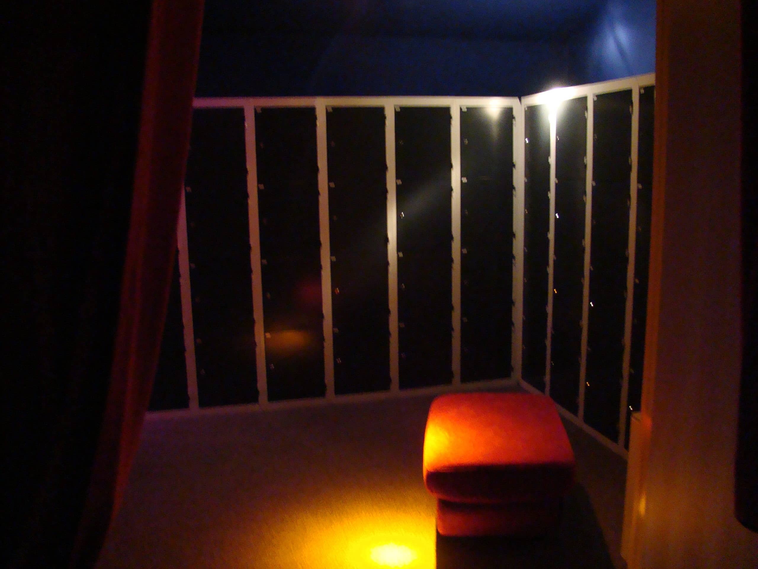 Zones are separated by thick velvet walls and acoustic panels, preserving whisper-intimacy.