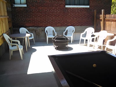 - Covered and fenced area outdoors with firepit and outdoor pool table